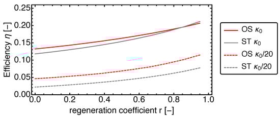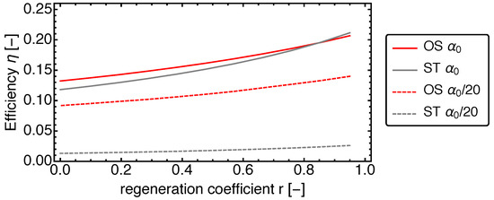 Thus the operation of the above defined regenerator—which we will term an r-Regenerator from here on—will depend on one variable r only: For a given value of the regeneration coefficient r, the regeneration coefficients and are determined in a way such that in stationary cyclic operation (all state variables are cyclic including the energy of WR) the conditions and Equation (39) are both fulfilled.