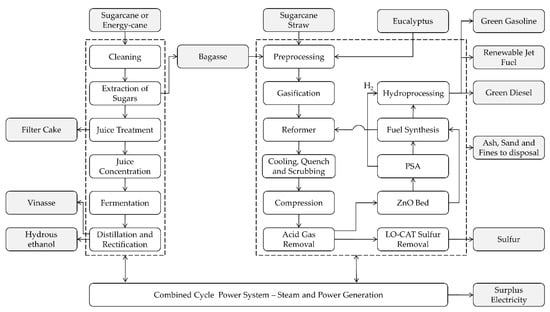 - Furtado, J.C., Jr.; Palacio, J.C.E.; Leme, R.C.; Lora, E.E.S.; Da Costa, J.E.L.; Reyes, A.M.M.; Del Olmo, O.A. Biorefineries productive alternatives optimization in the brazilian sugar and alcohol industry. Appl. Energy 2020, 259, 113092. [Google Scholar] [CrossRef]