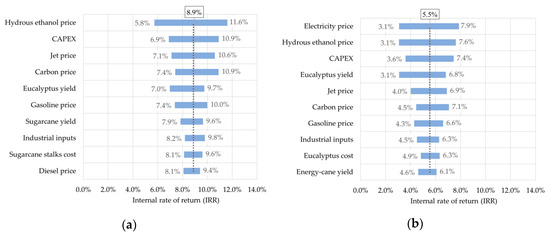 - Junqueira, T.L.; Chagas, M.F.; Gouveia, V.L.R.; Rezende, M.C.A.F.; Watanabe, M.D.B.; Jesus, C.D.F.; Cavalett, O.; Milanez, A.Y.; Bonomi, A. Techno-economic analysis and climate change impacts of sugarcane biorefineries considering different time horizons. Biotechnol. Biofuels 2017, 10, 1–12. [Google Scholar] [CrossRef]