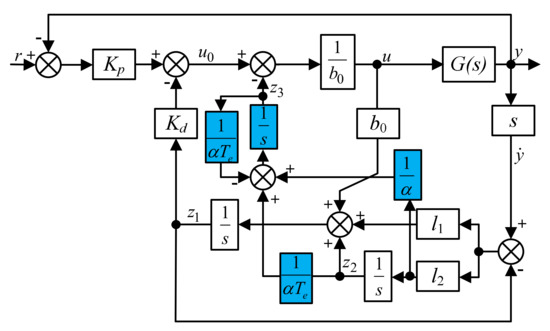 From Equations (22) and (24), the structure block diagram of the improved LADRC is shown in Figure 9.