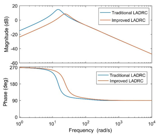 Frequency domain characteristics of improved LADRC and traditional LADRC.
