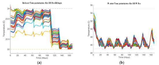 (a) Indoor temperatures for HVACs. (b) Water temperatures for WHs.