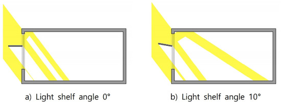 Differences in the inflow of natural light according to the light-shelf angle.