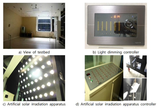 - Kim, C.H.; Lee, K.H.; Kim, K.S. Evaluation of Illuminance Measurement Data through Integrated Automated Blinds and LED Dimming Controls in a Full-Scale Mock-up. Energies 2020, 13, 3238. [Google Scholar] [CrossRef]