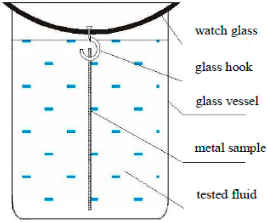 A set for testing the dispersing properties of paraffin inhibitors is presented in (Figure 2). The set consisted of a glass vessel with a volume of 100 mL, provided with a watch glass with a glass hook in the center, used to suspend the steel plate.