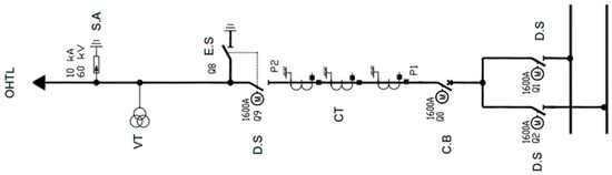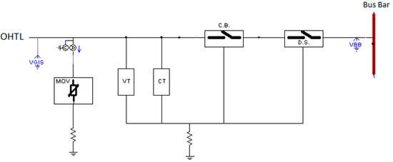 Figure 5 shows one switchgear bay, which includes the bus-bar, disconnecting switch, circuit breaker, current transformer, voltage transformer, and SA as simulated in the PSCAD/EMTCD [39] model.