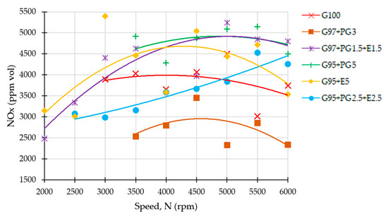In general, NOx emissions seem to increase with engine speed, as the power also increases, and NOx emissions are related to gas temperature.