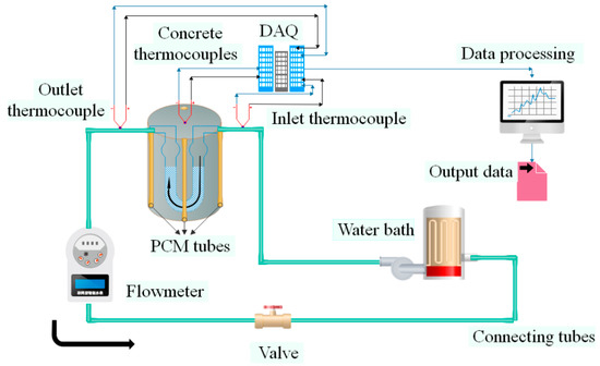 Figure 2 presents the experiment test rig components as the following: 4 U-tube HEX, data acquisition system (DAQ), water-bath, PCM containers, flowmeter, ball valve, and thermocouples