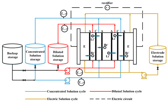 However, when the LiBr solution and the LiCl solution have the same dehumidifying ability, the concentration of the LiBr solution is higher than that of LiCl. The literature data so far show that the solution concentration is the key factor affecting the regeneration characteristic of ED. Therefore, the characteristic of the electrodialyzer to regenerate lithium bromide and lithium chloride is also very different, so it is necessary to conduct experimental exploration of the regeneration characteristic of ED regeneration for LiBr solution. On the other hand, electrode solution is significant for the regeneration characteristic of ED, so it is also important to study the effect of electrode solution on the regeneration characteristic of ED for LiBr solution with a high concentration.