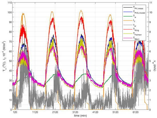 Several empirical and semi-empirical PV temperature models have been proposed in the research literature, mainly taking into account the solar irradiance on the PV plane IT, the ambient temperature Tα, and the wind speed vw. These include the well-known models by King et al. [4], Faiman [5], and others, as reviewed in [6,7,8].