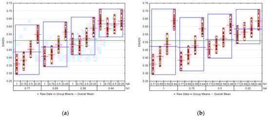 Variability plots of EW/EN illustrating: (a) N4 impact for various N1; (b) N1 impact for various N4.