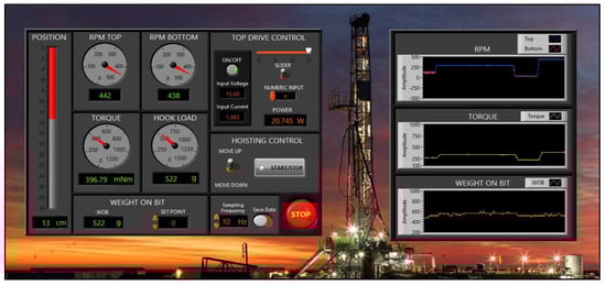 Figure 16 shows the different gauges and indicators on the HMI. The position, top RPM, bottom RPM, torque, hook load, and weight can be easily read from the gauges or the indicators in real-time.