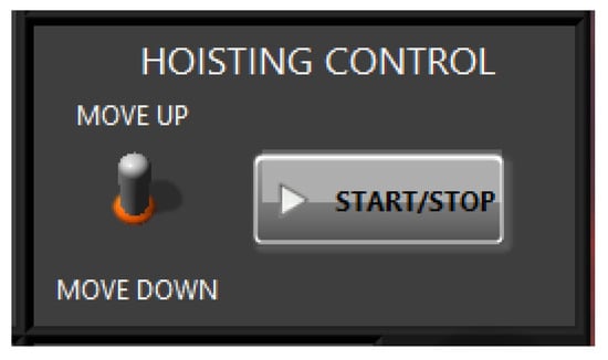 The weight on bit can be adjusted through the hoisting mechanism control panel shown in Figure 18. By moving up, the weight on bit is increased, and by moving down, the weight can be decreased. The change in weight on bit is related to the tension in the string. The user can set the toggle switch to move up or move down position and press the start/stop button to move up or down.