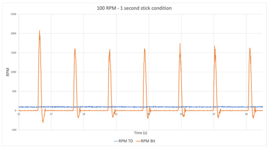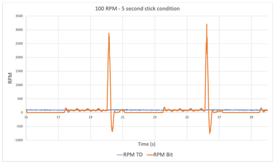 Tests at 100 RPM (1 s and 5 s bit sticking).
