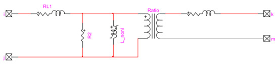 Basic building block for each phase of the transformer, EMTP-RV model.
