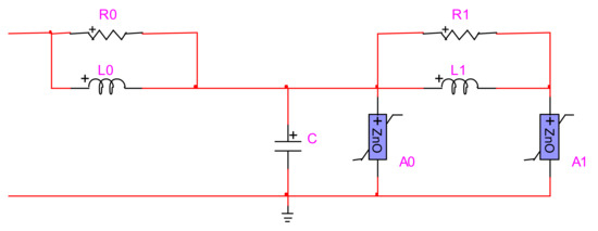 In order to simulate the behavior of a surge arrester, a frequency-dependent model of a metal oxide surge arrester, known as metal oxide varistor (MOV) surge arresters, is used. The modeling is done based on the guidelines provided by IEEE Working Group 3.4.11 [36]. The most commonly used frequency-dependent model is an RLC circuit with two nonlinear resistances Ao and A1 separated by an R-L filter, see Figure 4. The voltage-current (V-I) characteristics of the nonlinear resistances are derived from the work in [36], and the functionality of each type of surge arrester has been verified by performing a simulation-based test under a 10 kA current impulse (8/20 μs) and compared with the practical information obtained from [37].