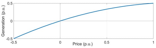 where represents the generation output in p.u., and and are constants to be determined based on the generator’s operating costs. In practice, the price and the generation output will be subject to lower and upper bounds.