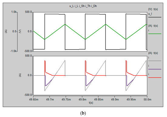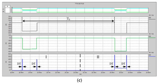 and the diode is turned-off—only the transistor is conducting reverse current (again, similarity to the area marked with the angle σ in Figure 1b can be found). Then, the load and transistor current continues to increase and finally, becomes positive after time t2. Over last time period t1, the transistor TH conducts a positive load current—it ends after TS/4 with a hard commutation to DL. Then, the cycle repeats and exactly the same waveforms can be observed for the other switch during the second half of the switching period.