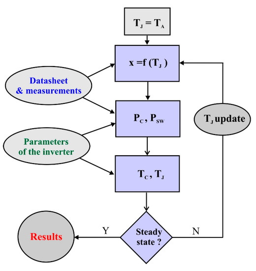 The diagram of the applied procedure to estimate power losses and junction temperatures.