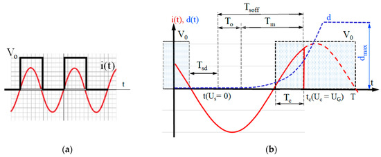 The general idea of the controller operation is presented in Figure 1. Herein, synchronization signals Vo (Figure 1a) were obtained using a “zero” detector, the construction of which is based on a LM111 voltage comparator.