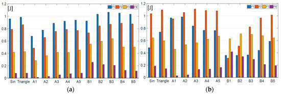 Figure 7 presents calculated average arc energy values for the devices listed in Table 1 as CI-1 and CI-2 with regard to various testing voltage signals and diverse current breaking moments φ.