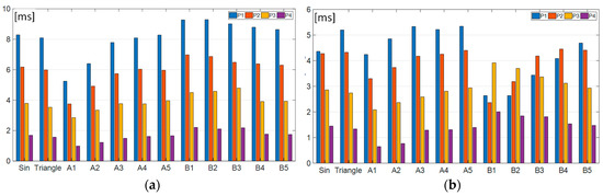 For A-type waveforms, only a single maximum value occurred. Therefore, arc quenching was observed at the falling edge of the current waveform at the gradual deterioration of conditions for arc burning. In the course of the study, SD and CV parameters were calculated for all circuit breakers for arc energy and arcing time (Figure 9 and Figure 10). This allowed estimating the variability of the measured parameters with respect to the accuracy of the applied measuring method.