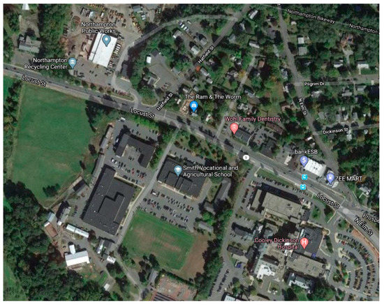 Satellite Google Earth image of CDH, SVAHS, and Northampton DPW. Map data: Apache License, Version 2.0, Google, 2020 [14,15].
