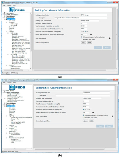 FEDS screen shots show the DPW garage (a) and administrative building (b) models. Created via the FEDS software [17].