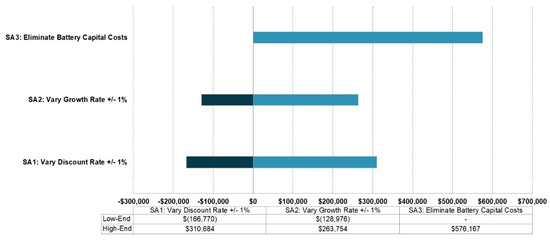 - Sensitivity analysis showed that decreasing the discount rate by one percent led to an increase of $311 thousand in NPV benefits while increasing it by one percent decreased NPV by $166 thousand. Increasing the annual benefit growth rate by 1% resulted in an NPV increase of $264 thousand and a 1% decrease resulted in an NPV drop of $129 thousand. Using a grant from the DOER to eliminate all capital costs associated with the BESS would improve NPV by $577 thousand.