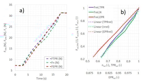 In Figure 7b one can see that pressure and power ratios are more suitable to describe thrust output of the engine, as rotor speed exhibits significant nonlinearity described above. Nevertheless, rotor speed and TPR have quite a broad range of their respective values, they change from around 60% to 100% of their own maxima, i.e., one can find considerable resolution between thrust and these thrust parameters. Figure 7b incorporates a secondary horizontal scale for EPR, because its relative change is just crosses the 10% boundary. Even if EPR offers a nearly linear correlation to thrust, its narrow range results in more sensitivity to noises in the measured values. Due to the difference in the ranges, where EPR has around quarter of the range as compared to the others, a given error in TPR or rotor speed will only have an effect of about 25% on the respective variables in contrast to EPR.