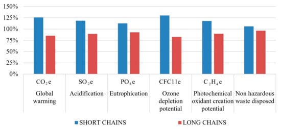 A comprehensive assessment of the environmental impacts of various supply chains requires considering all effects generated throughout the product or system’s life cycle [71], including energy consumption as well as the use of capital assets involved. Due to its holistic nature, Life Cycle Assessment is a universal approach to quantitative environmental analyses. Despite some criticism and limitations [72,73], the LCA methodology is a commonly applied and recognized method for environmental assessments brought into elementary level, referring to a single material and product. The environmental performance of a product is generally shown in an Environmental Product Declaration (EPD) where environmental indicators are defined and standardized according to a set of standards on LCA (ISO 14040, ISO 14044, ISO 14025 and EN15804) or in the Environmental Certificate provided by the manufacturer. In recent years, the EPD database has grown substantially and it now covers a wide range of categories, including services, materials, vehicles, packages, food, machinery, chemical products and many other. More information on the environmental impacts of various products or materials can also be found in the literature. Regarding transportation, the share of transport in global greenhouse gases (GHG) in typical modes of transport [74,75,76,77] as well as electric vehicles [76,78,79] was analyzed in a search for ways of reducing emissions and global energy consumption [1]. Despite a considerable amount of literature studies concerning the environmental impact of different transportation modes [76,80,81,82], most of the studies are focused only on the level of greenhouse gas emissions expressed in the Global Warming Potential (GWP) index.