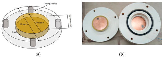 The parallel plate system (shown in Figure 1), to be connected to the impedance analyzer, is a cell, the body of which is made of plastic material (PVC). The cell has two circular copper electrodes of 30 mm diameter and a spacing of 6 mm. In the volume included between the two copper plates, the liquid sample is inserted.