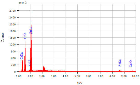 EDX analysis was also performed to study the chemical composition of the prepared photoanodes. Figure 7 shows the presence of calcium, zinc, and oxygen in the prepared seeded Ca-doped ZnO nanorods-based photoanodes. The presence of these three chemicals shows the purity of the prepared photoanodes without the incorporation of any impurities. The EDX graphs show the proper doping of calcium in the ZnO nanostructure.