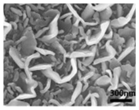 High resolution SEM captions of (a–d) CuO-NiO nanoparticles enwrapped within exfoliated graphene nanosheets. Reproduced, adapted and reprinted with permission from Reference [131].