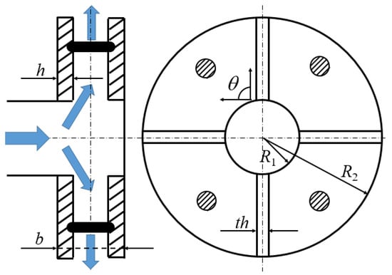 Present tesla bladed disk (TBD) impeller (the flow direction can be seen in Figure 3).