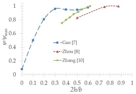 Tesla bladed pump lift head ratio versus coefficient h/b. (extracted from Gao [7], Zhou [8] and Zhang [10]).