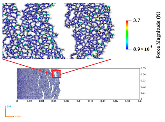- Cundall, P.A.; Strack, O.D.L. A discrete numerical model for granular assemblies. Géotechnique 1979, 29, 47–65. [Google Scholar] [CrossRef]