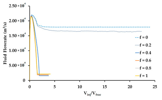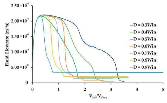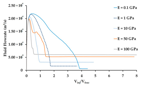 Flowrate at the fracture outlet from cases with various Young’s moduli.
