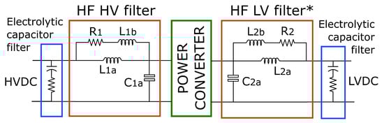 Complete converters filter structure. * HF LV filter block is not required in ABAC and CD topologies.