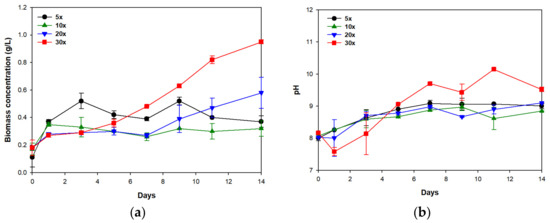 - Cho, H.U.; Kim, Y.M.; Park, J.M. Enhanced microalgal biomass and lipid production from a consortium of indigenous microalgae and bacteria present in municipal wastewater under gradually mixotrophic culture conditions. Bioresour. Technol. 2017, 228, 290–297. [Google Scholar] [CrossRef]