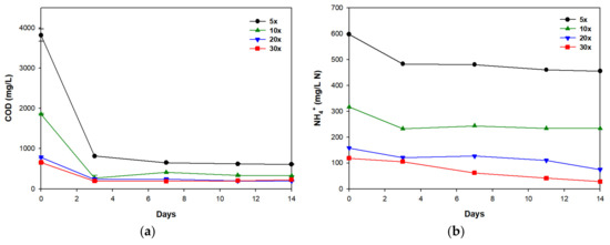 - Kwon, G.; Nam, J.-H.; Kim, D.-M.; Song, C.; Jahng, D. Growth and nutrient removal of Chlorella vulgaris in ammonia-reduced raw and anaerobically-digested piggery wastewaters. Environ. Eng. Res. 2020, 25, 135–146. [Google Scholar] [CrossRef]