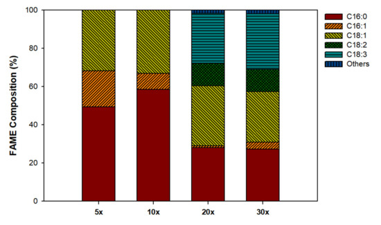 - Shin, D.Y.; Cho, H.U.; Utomo, J.C.; Choi, Y.N.; Xu, X.; Park, J.M. Biodiesel production from Scenedesmus bijuga grown in anaerobically digested food wastewater effluent. Bioresour. Technol. 2015, 184, 215–221. [Google Scholar] [CrossRef]