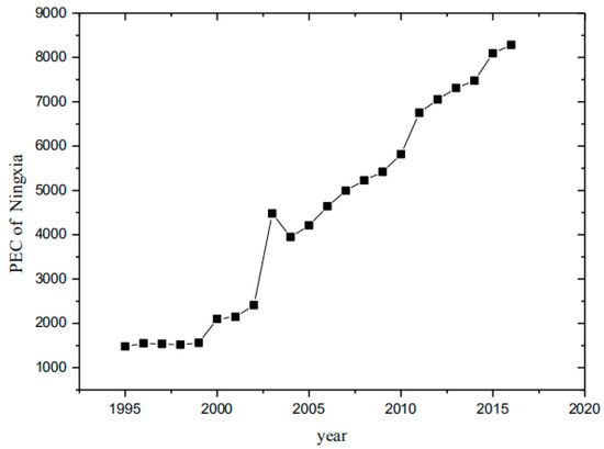 The per capita energy consumption data of the Ningxia Hui Autonomous Region (kce/person).