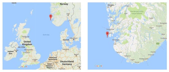 The TetraSpar floater will be moored at the Marine Energy Test Centre in the North Sea off the island of Karmøy on the western coast of Norway—approximately 1500 m north-west of the Equinor Hywind Demo, see Figure 2.