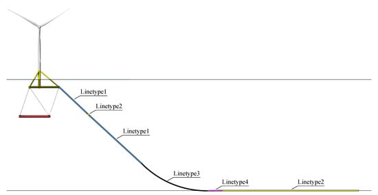 The keel is suspended from the floater through six lines. Each line is composed of a bundle of synthetic ropes. The mechanical properties of the line type are presented in Table 7.