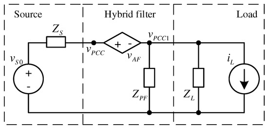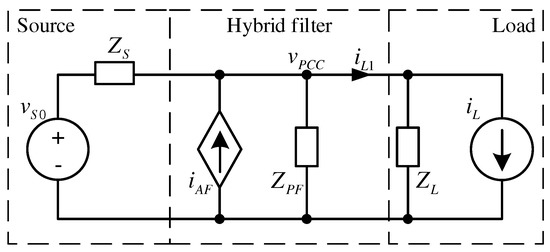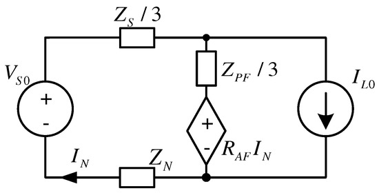 Here the voltage source models zero-sequence component of supply voltage and the current source models zero-sequence component of the load current. The active filter is modeled by the current controlled voltage source.