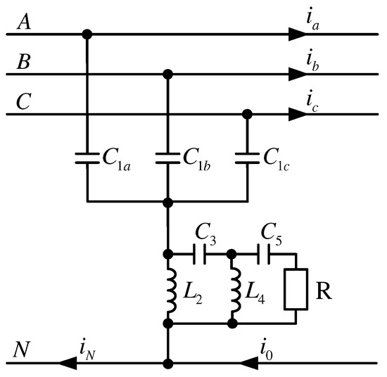 The zero-sequence equivalent network of three-phase four-wire power system with proposed hybrid filter is shown in