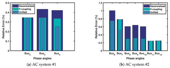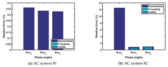 The state variables x of an AC system with n buses are 0 θ 1 θ 2 θ n ; V 1 V 2 V n T ; the voltage angle of the slack (reference) bus ( θ 1 ) is set to zero, and θ n and V n are the n t h bus phase angle and voltage magnitude respectively [24].