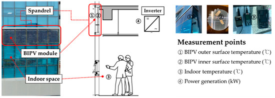 - Yoon, J.H.; Oh, M.H.; Kang, G.H.; Lee, J.B. Annual base performance evaluation on cell temperature and power generation of c-Si transparent spandrel BIPV Module depending on the Backside Insulation Level. J. Korean Sol. Energy Soc. 2012, 32, 24–33. [Google Scholar] [CrossRef][Green Version]