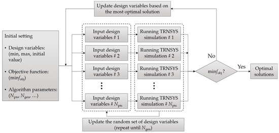 - Wetter, M. GenOpt-A generic optimization program. In Proceedings of the Seventh International IBPSA Conference, Rio de Janeiro, Brazil, 13–15 August 2001; pp. 601–608. [Google Scholar]